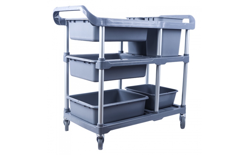 酒店收餐車三層推車撤餐車收碗車帶垃圾桶多功能塑料餐廳飯店商用