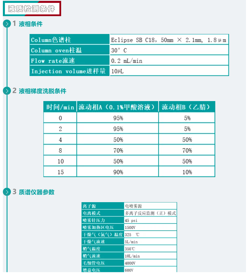 依據(jù)《GB/T 22286-2008 動(dòng)物源性食品中多種β-受體激動(dòng)劑殘留量的測(cè)定 液相色譜串聯(lián)質(zhì)譜法》,試樣中的β-激動(dòng)劑經(jīng)過(guò)酶解,用高氯酸調(diào)節(jié)pH值,沉淀蛋白后離心,上清液用氫氧化鈉調(diào)節(jié)pH后用異丙醇-乙酸乙酯提取,用陽(yáng)離子交換柱凈化,采用液相色譜-串聯(lián)質(zhì)譜法進(jìn)行測(cè)定,內(nèi)標(biāo)法定量。