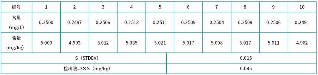 表2 硝酸鹽檢出限測試結果